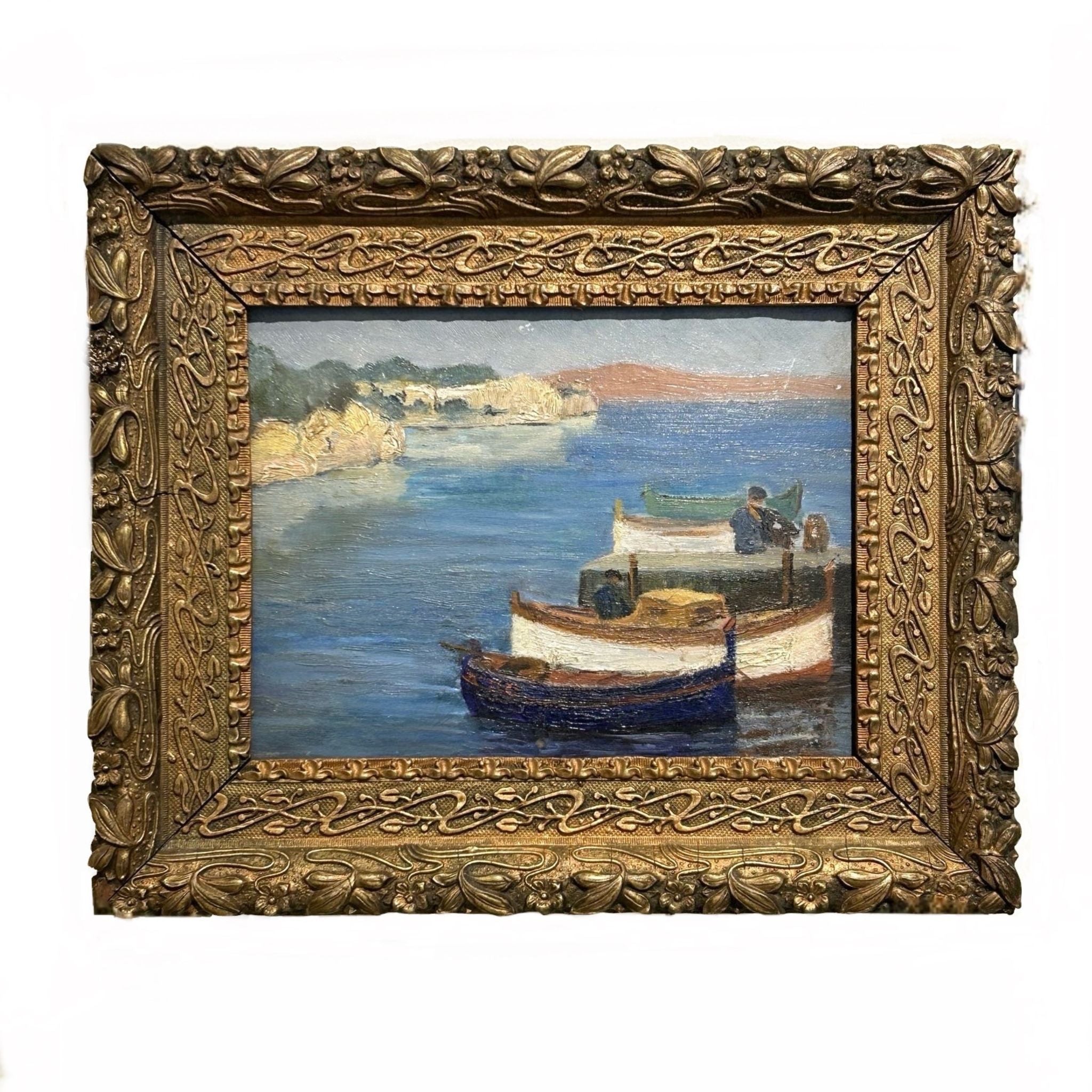 Antique Painting Boats in the Harbour - From Paris