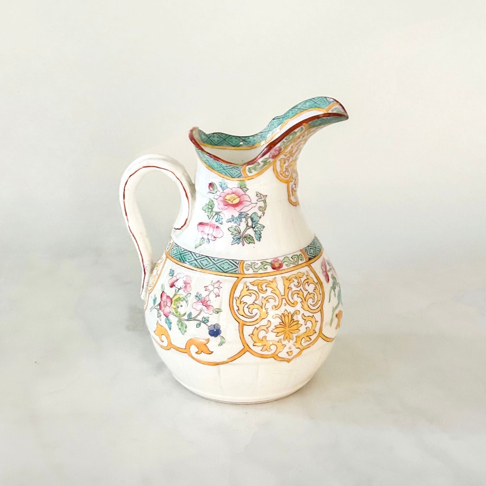 This exquisite small antique pitcher sourced from Paris showcases the renowned craftsmanship of Minton porcelain. Its elegant design and compact size make it a perfect accent for any vintage collection or stylish table setting.