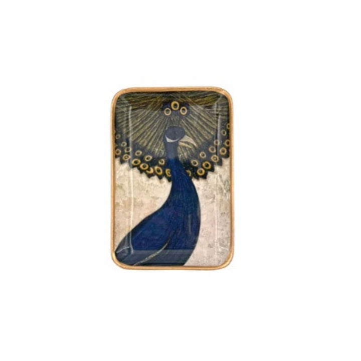 Bring charm to your table with this exquisite Boncoeurs rectangular tray, with a striking peacock print. Crafted from lightweight enameled metal, it's perfectly sized for a personal coffee moment, and also doubles beautifully as a catchall, jewelry tray, or soap dish—endless possibilities in one charming design.