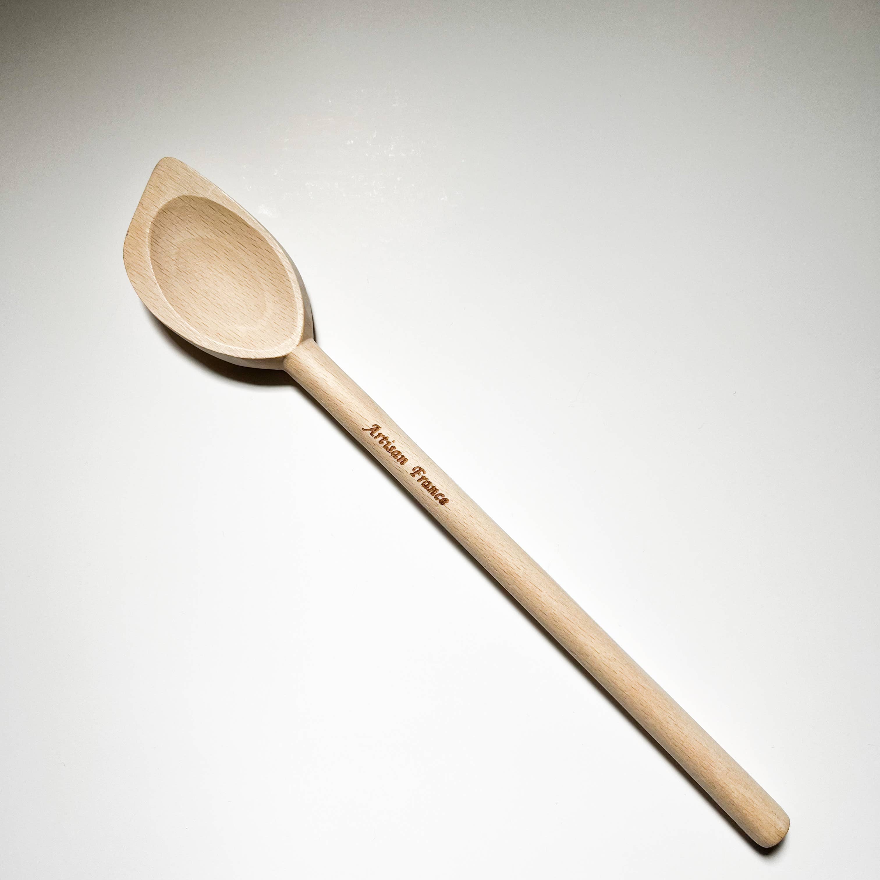 The Corner Spoon has a pointed shape to scrape the preparations without damaging dishes or pans and prevents wasting food. This non-metallic spoon does not interfere with subtle flavours and does not alter the taste.