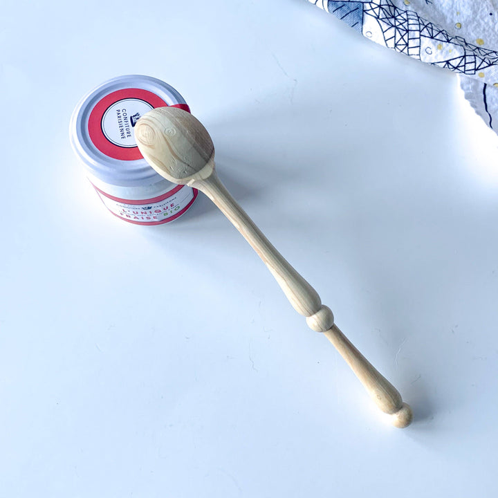 This jam spoon is perfect for jelly, jams and chutneys. The long handle allows reaching the bottom of larger jars. Its soft shape scoops all the goodness in tiny edges. Made in France. L 20cm / 8". 100% natural boxwood, compact and resistant. Plastic-free item and packaging.