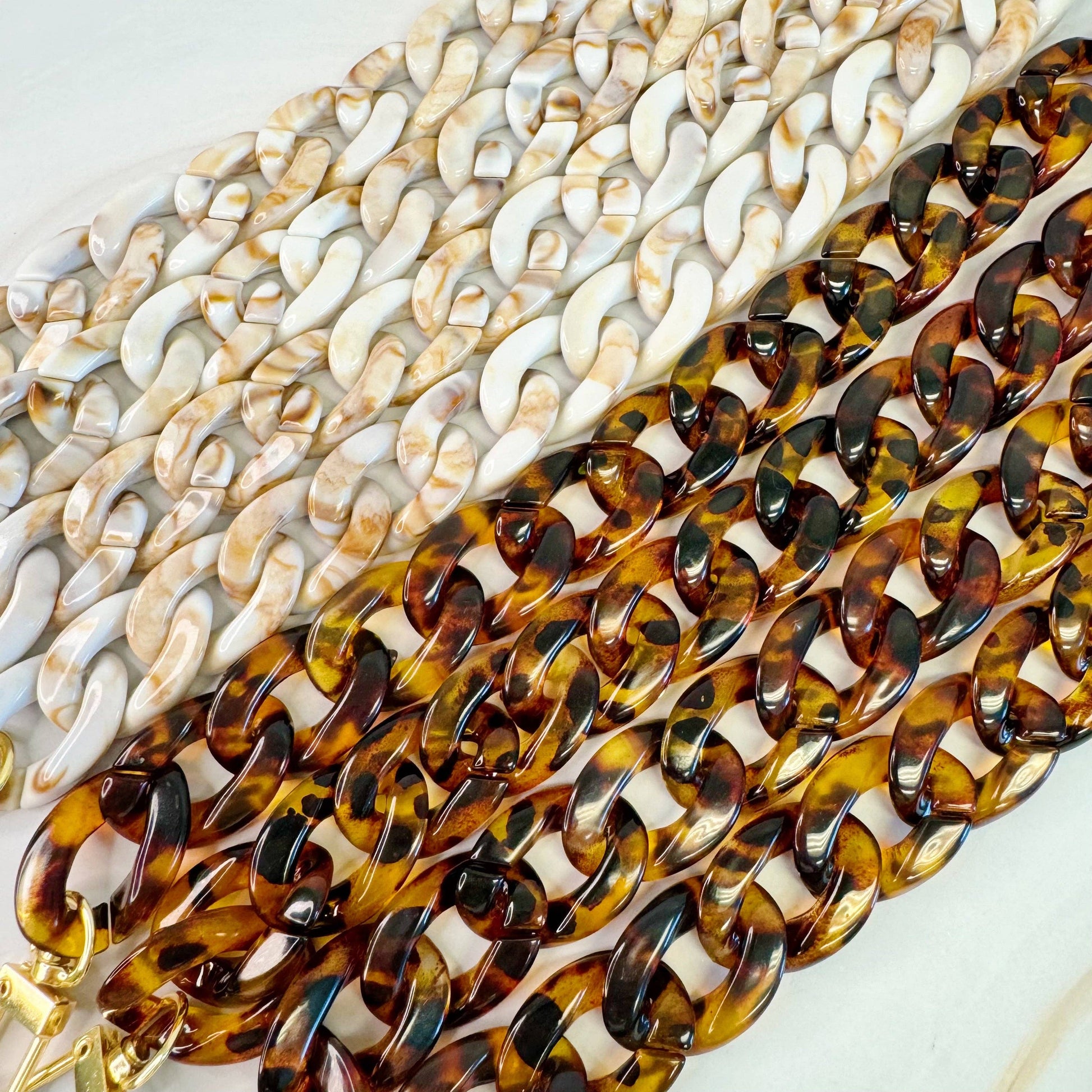 Attach this versatile lanyard to your phone, bags/wallets, ID or keys for hands-free convenience. The beautiful tortoise patterned acrylic chain features golden hardware and includes a cello card for easy attachment. Keep your essentials close and secure with the Wink Lynk Multi Function Chain Lanyard