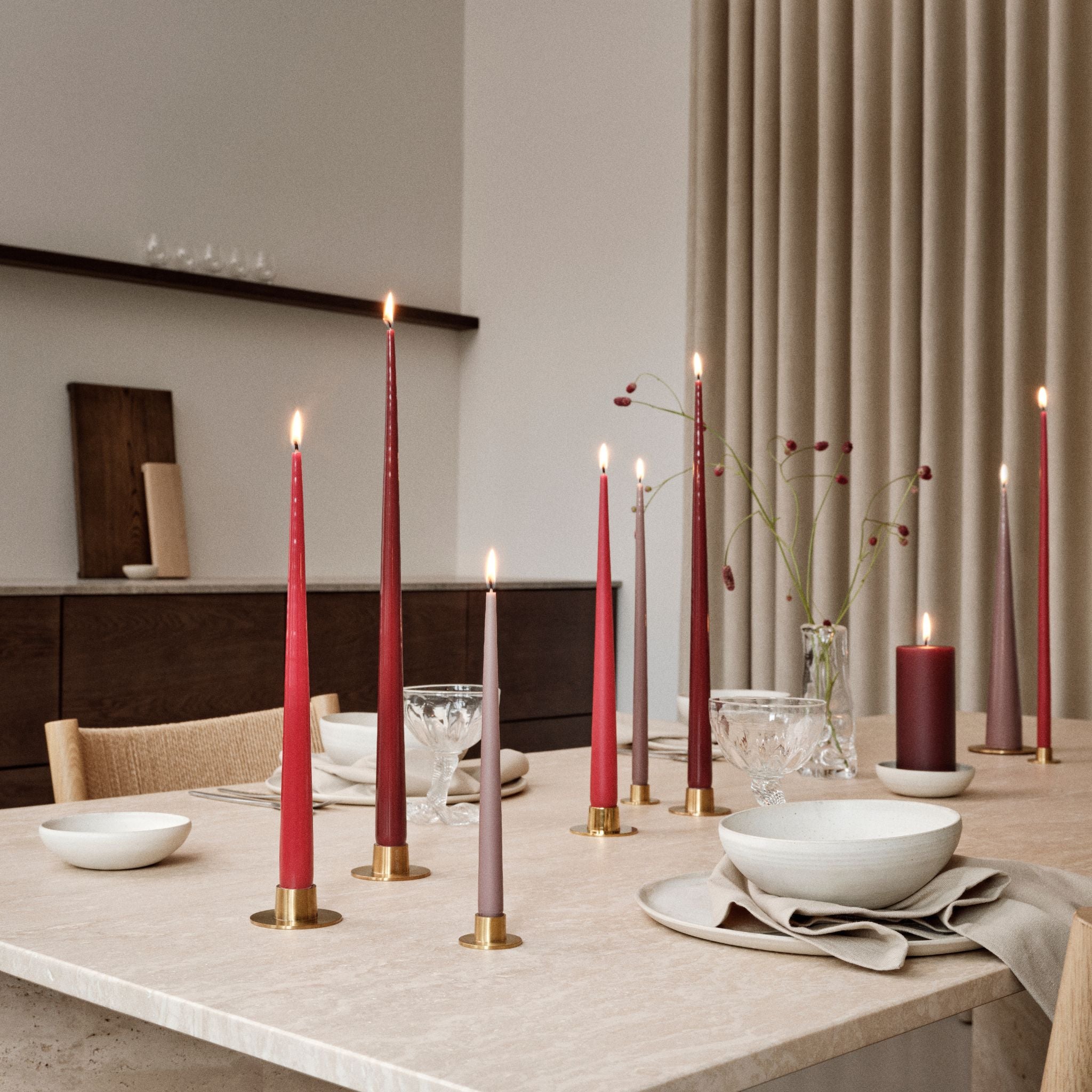 Elegant and enduring, the self-standing matte Cone Candle in Deep Wine brings effortless sophistication to any setting. Made from 100% pure, fragrance-free paraffin wax and finished with a 100% cotton wick, it offers a clean, even burn and naturally self-extinguishes 2–3 cm from the base. For optimal performance, keep the wick trimmed and protect the candle from direct sunlight or draughts—a beautifully simple expression of minimalist design.