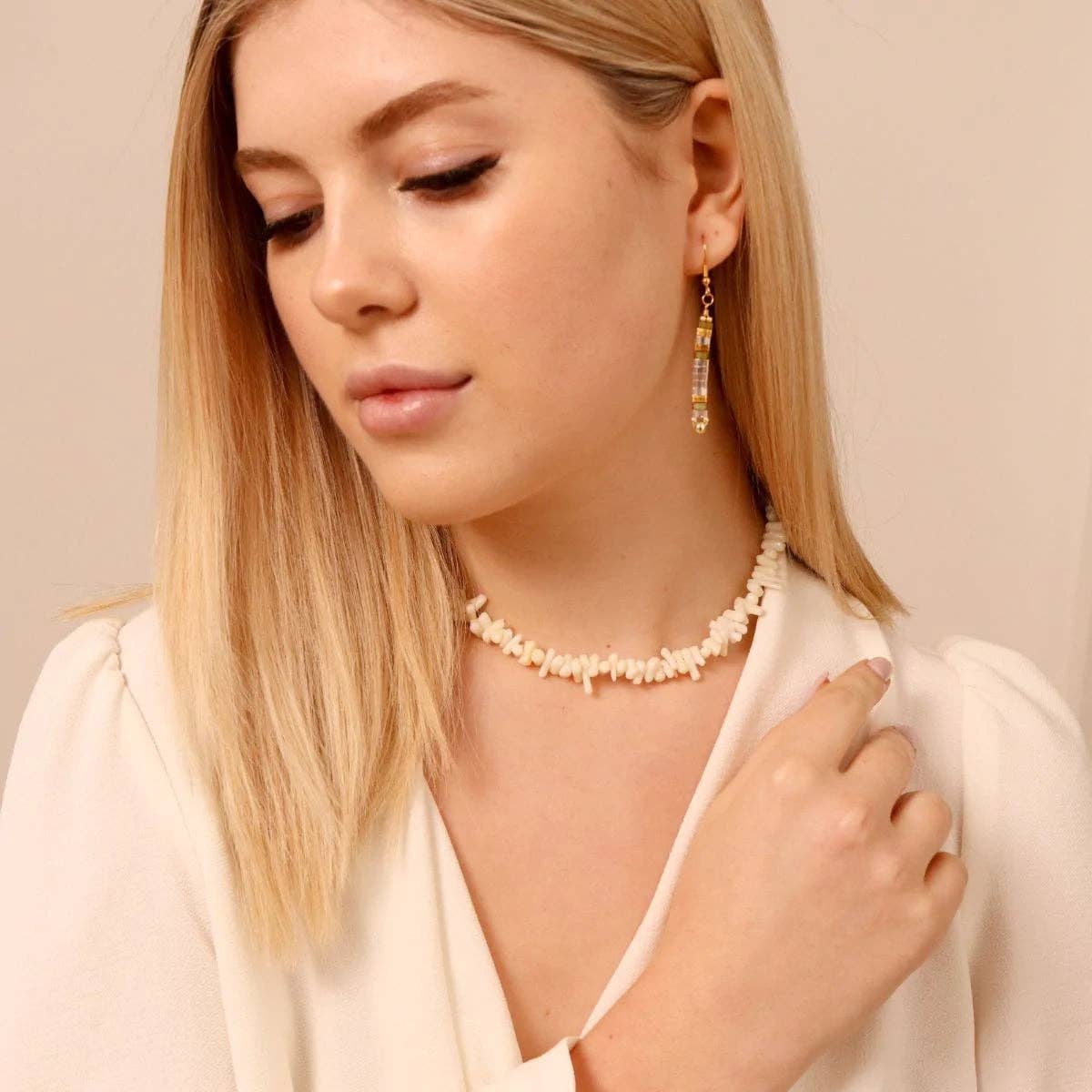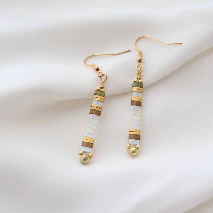 Handcrafted drop earrings featuring authentic Japanese Miyuki beads and gold-plated stainless steel, combining artisanal quality with elegant design.