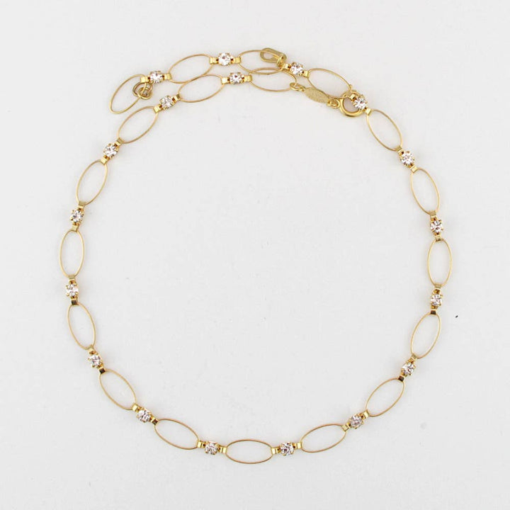 The Eyelet Crystal Necklace brings effortless sophistication to your daily rotation, featuring interconnected oval links in 14-karat gold plating adorned with luminous crystals. A versatile treasure that transitions seamlessly from morning to evening, this piece celebrates the beauty found in understated refinement.