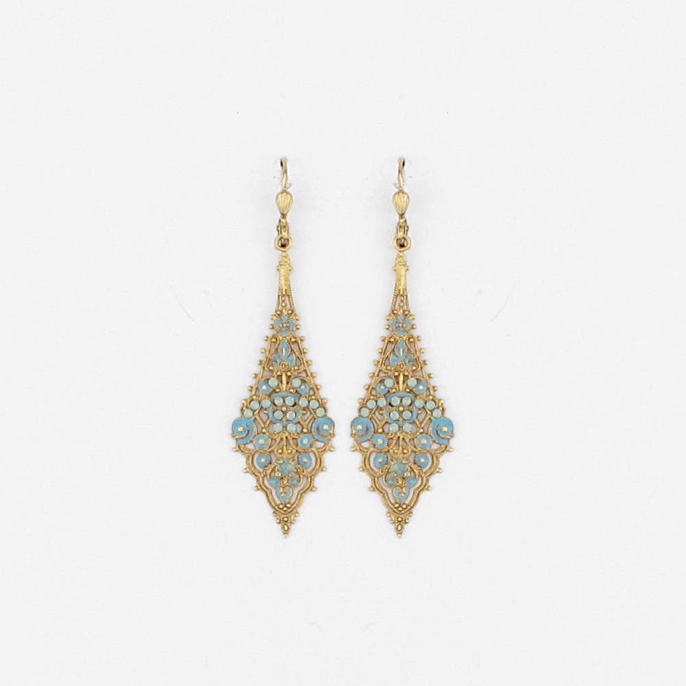 La Vie Parisienne pieces are carefully rendered from the original molds and stampings. All handmade and hand set with European crystals and made of either 14K gold plating or “old silver”, a unique French process of laying sterling silver or 14K gold over a copper or brass base. Following traditional French artisan techniques allows each classic piece to best exhibit the delicate details of these historic designs.
