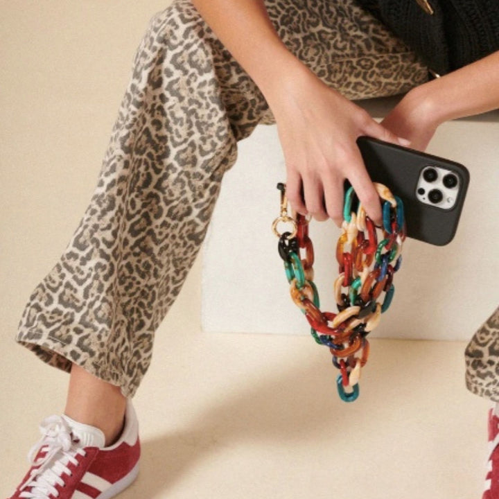 The La Coque Francaise Ambre Multicolour Phone Chain brings style and convenience together with its 120 cm length and vibrant resin design. Easily clip it onto a ring case or universal adapter using the rotating carabiners for secure hold. Enjoy the subtle elegance of its engraved LCF medal and the striking play of light through its transparent links. A perfect accessory to keep your phone close while adding a splash of colour and charm to your everyday look.