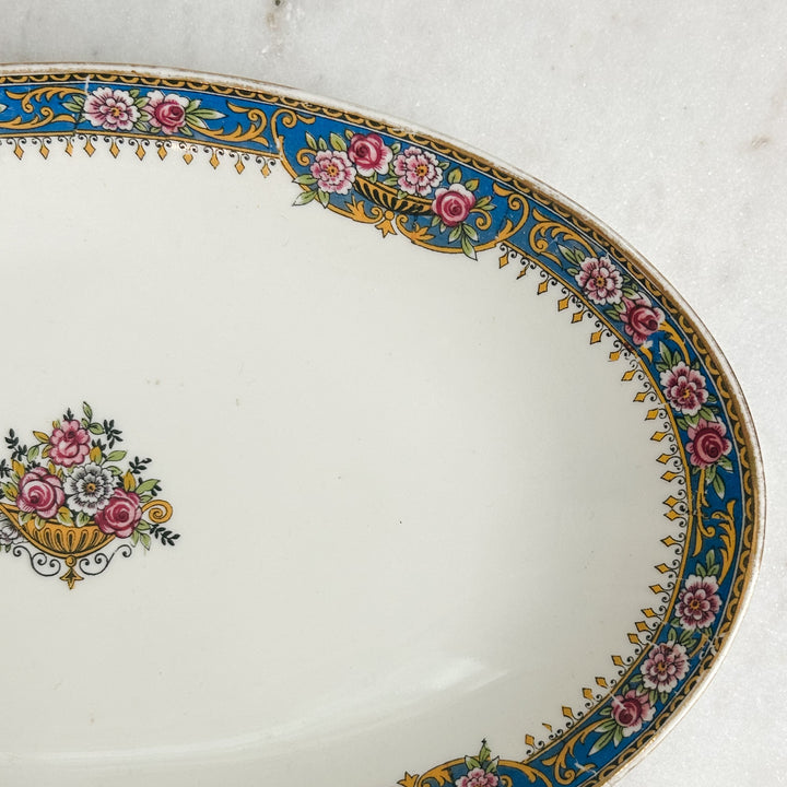 Elegant Limoges small oval serving platter featuring a delicate Parisian floral pattern. Perfect for entertaining or as a collectible piece from France.
