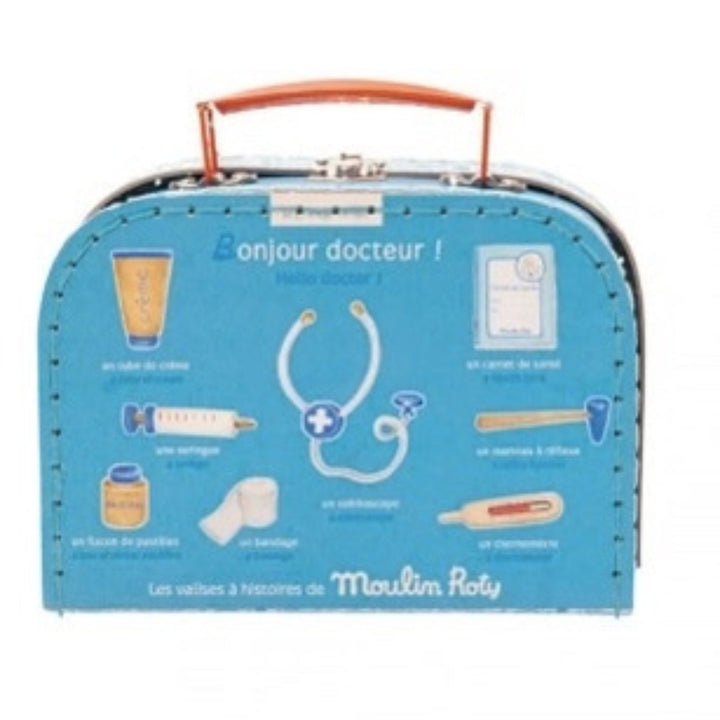 This charming doctor’s suitcase is ready for little hands to care for their tiny patients! Made from sturdy cardboard with a metal handle and latch, it’s decorated in bright, playful colours featuring delightful illustrations by Camille Jourdy. Inside, children will find a health record, bandage, and solid wooden medical tools—including a tube of cream, reflex hammer, bottle of tablets, syringe, stethoscope, and thermometer—perfect for imaginative play and learning about caring for others.