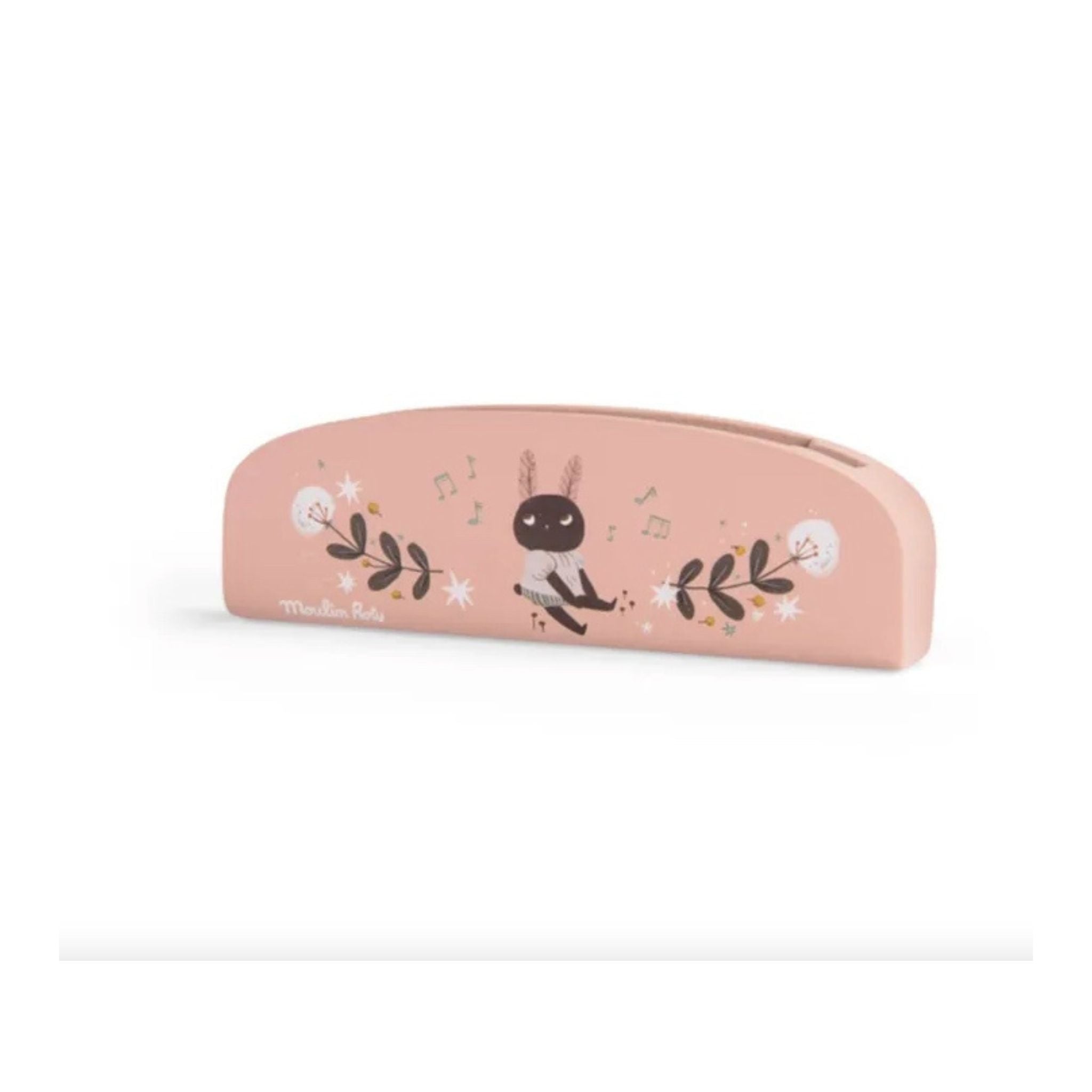 Introduce budding musicians to the joy of music with this charming painted wooden harmonica. Featuring poetic illustrations from the "Après la pluie" collection, it adds a sprinkle of magic to every note. Its pocket-sized design lets kids carry their music anywhere, making practice and playtime fun and easy. Designed by Lucille Michieli, this harmonica is the perfect first step into a musical adventure.
