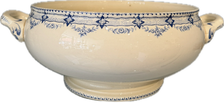 Bring a touch of Parisian charm to your home with this Antique Ceramic Serving Tureen. Featuring intricate patterns, a sturdy pedestal base, and elegant handles, this tureen combines antique beauty with practical design. Ideal for soups, stews, flower arrangements, or fruit, it adds timeless sophistication and style to your home.