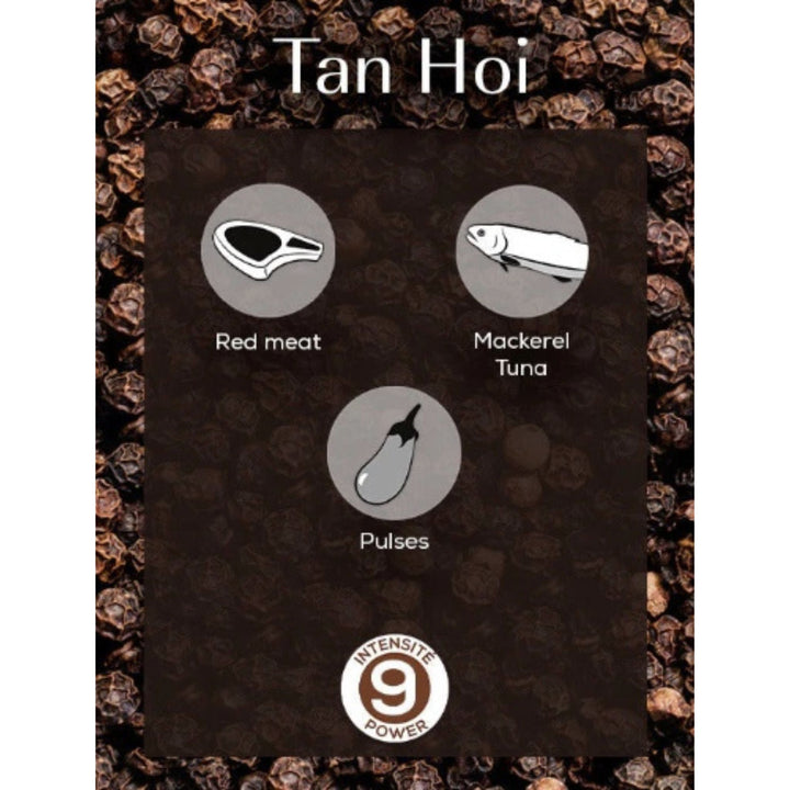 An exceptional pepper for everyday use, Peugeot's Tan Hoi Black Pepper is sourced from Vietnam for its warm, woody notes and sharp, intense heat. Perfect for enhancing red meat, oily fish, tomato-based dishes, lentils, cabbage, and mashed potatoes. Designed for Peugeot pepper mills with an intensity level of 9, this premium pepper comes sealed in 4 airtight sachets to preserve freshness and aroma. The packaging offers easy filling, triple protection from air, light, and moisture, while reducing environmental impact. Elevate your cooking with this powerful and flavourful black pepper.