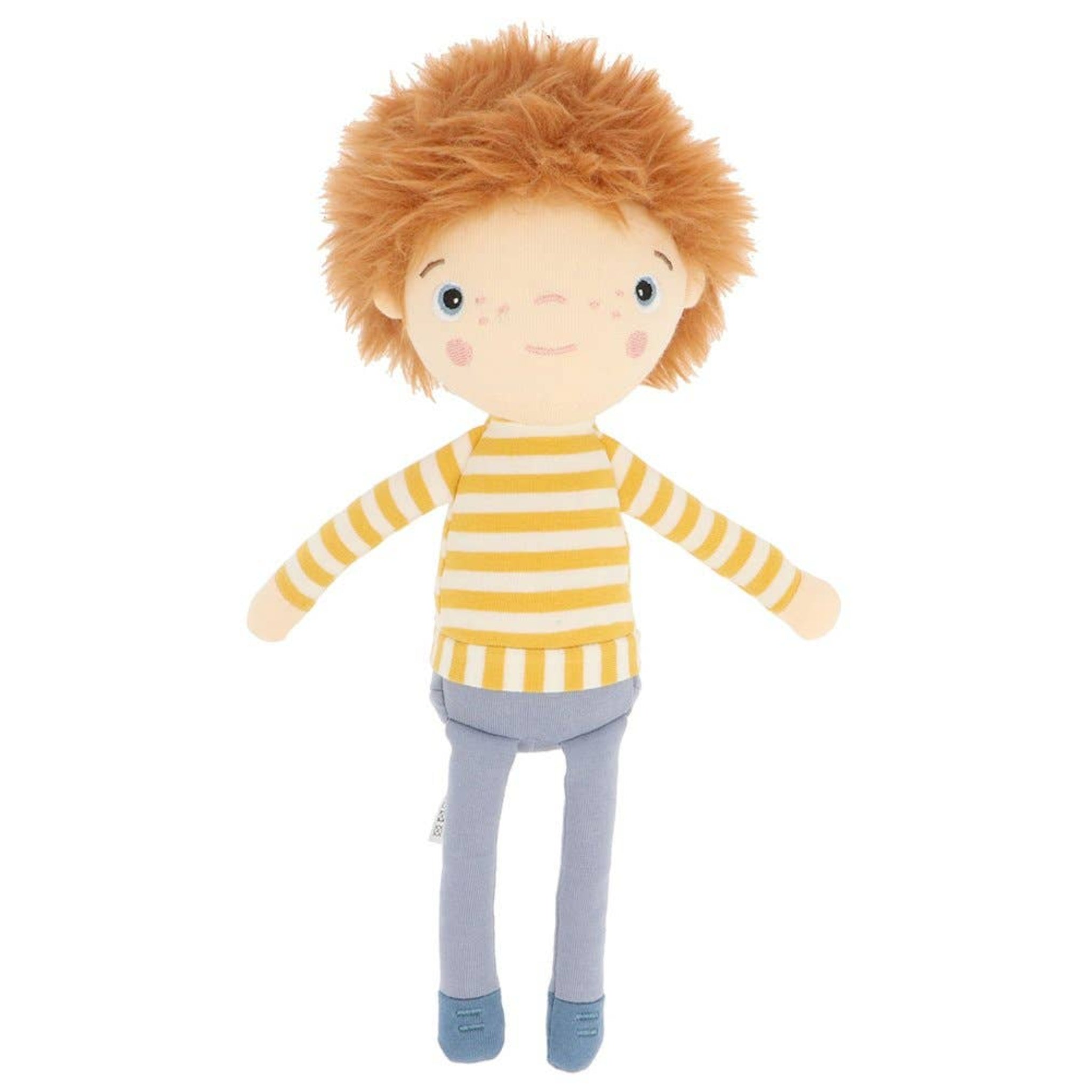 Meet Nico, an adorable soft doll in his striped sweater and denim pants. He's soft, cuddly, and always ready for hugs and adventures! With his original soft spiky hair, Nico is sure to become your little one’s favourite companion.